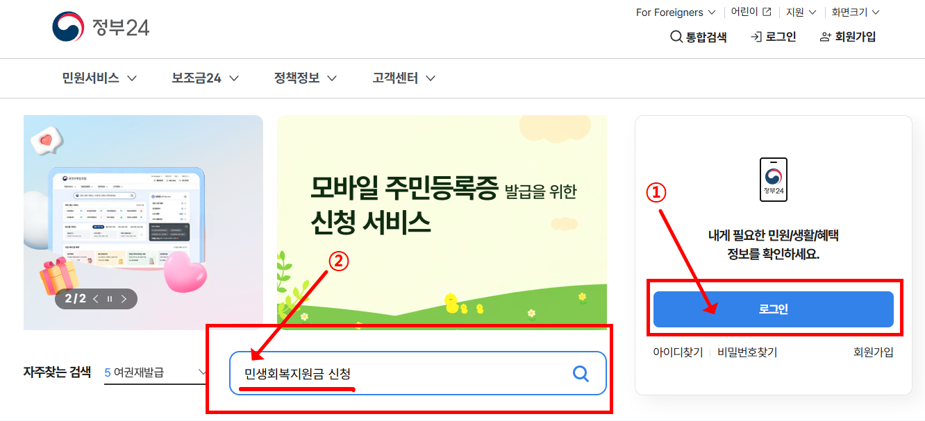 - 온라인 신청: - 정부24 또는 보조금24 접속 - 공동인증서 로그인 후 ‘민생회복지원금 신청’ 클릭 → 양식 작성