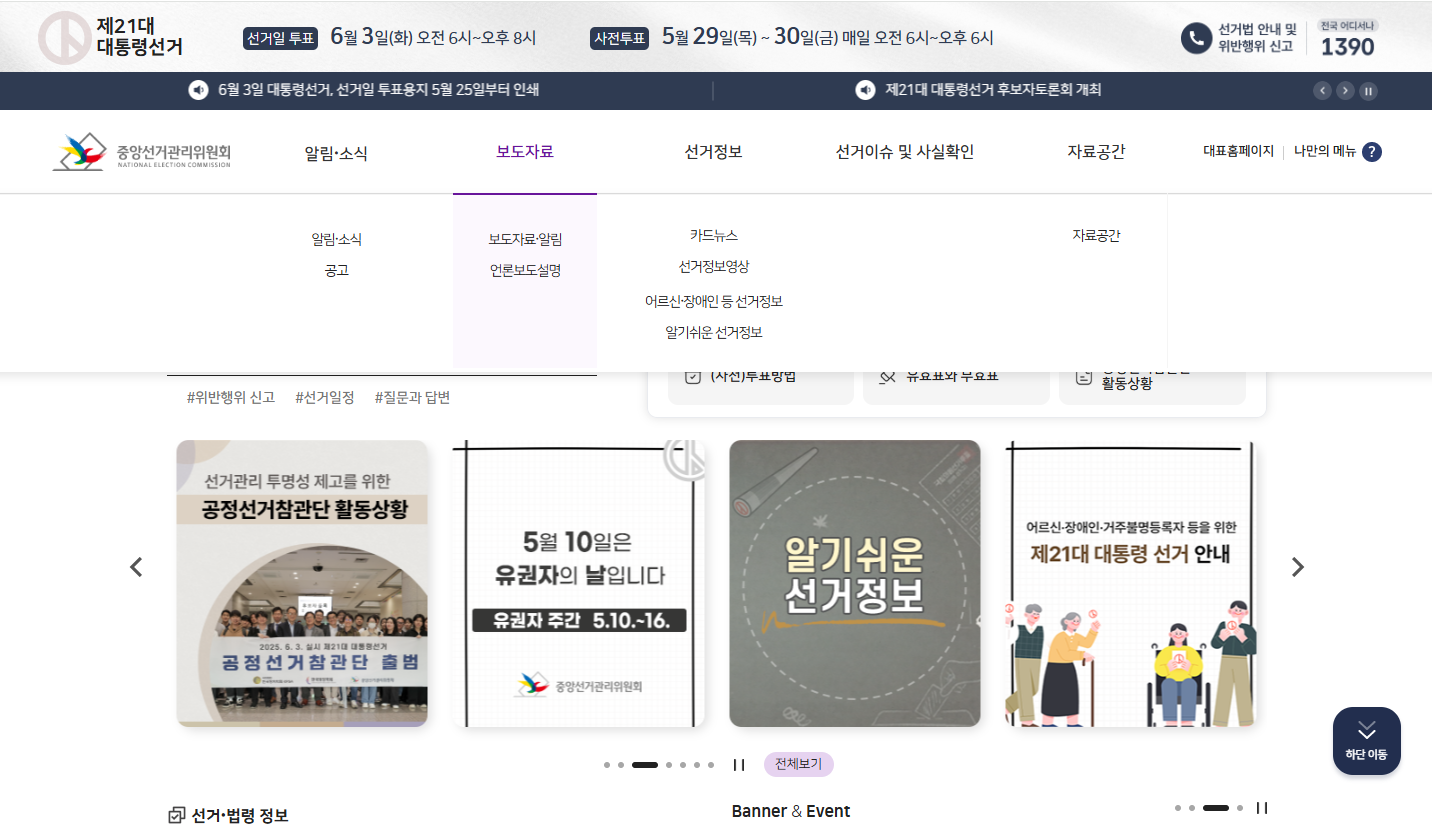 - 포털 사이트에 **'중앙선거관리위원회'**를 검색하거나