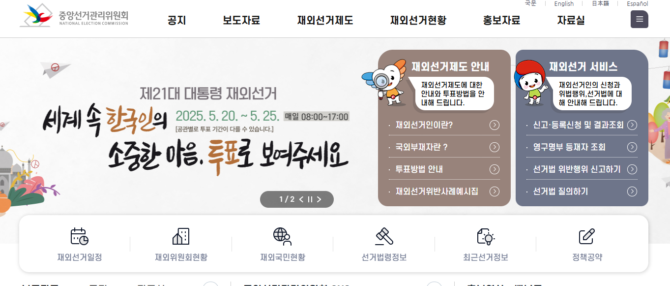 - 재외투표 기간: 2025년 5월 20일(화) ~ 5월 25일(일)